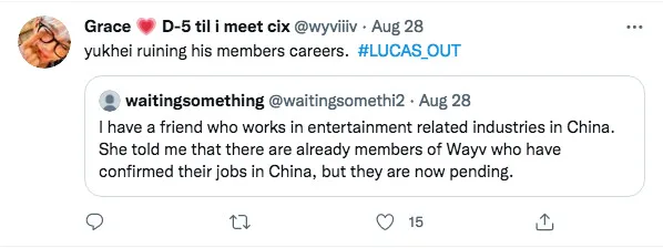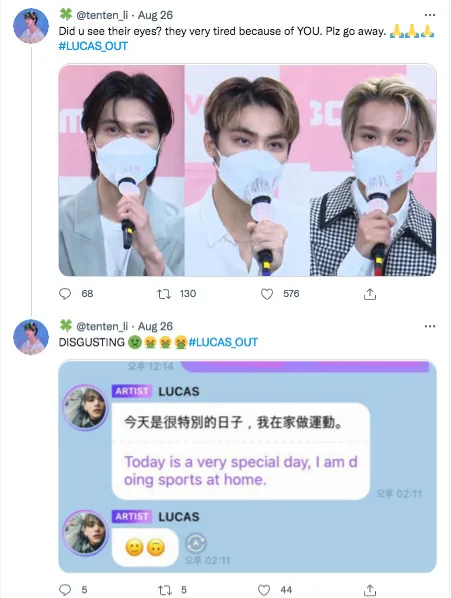 With the reports saying that Lucas treated his alleged ex-GFs as his “mistresses”, some anti-fans have taken it upon themselves and started the “#Lucas_Out” movement online. In this case, they claimed that “they feel bad for his fellow members in WayV who are suffering due to his scandal and that he’s not as innocent as he looks”. Not only that, they also provided several “evidences” of him misbehaving with his pet and other members.