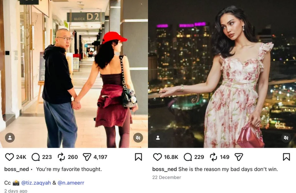 Over the weekend, Nedim Nazri shared a photo of himself and Nadia Brian holding hands while out in public. The entrepreneur looked back towards the camera as the actress, dressed in red, gazed ahead. “You’re my favourite thought,” he captioned the image. According to the post, actress and model Tiz Zaqyah took the photo.