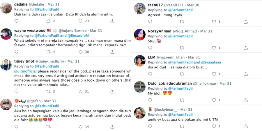 Most of them pointed out that the 49-year-old is indeed one of the most suitable candidates to fill in the spot. Not only that, some even expressed their hopes that the University will consider their proposal for Rizalman’s election in the UiTM’s board of directors.