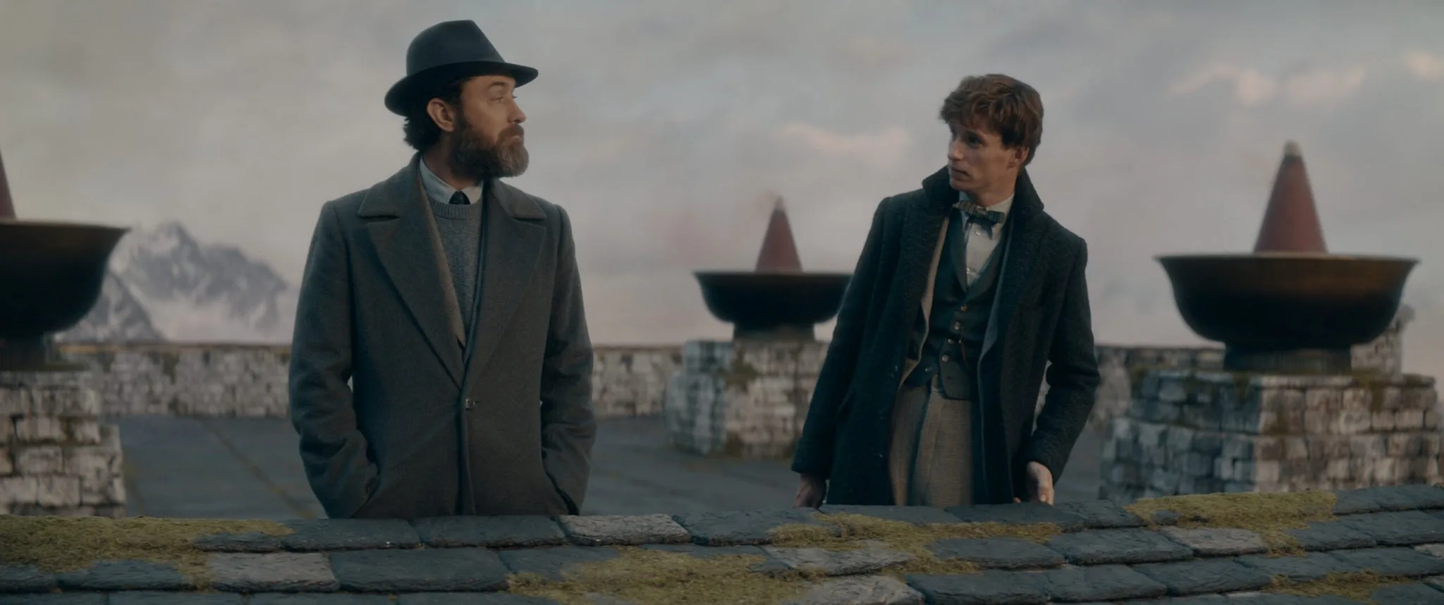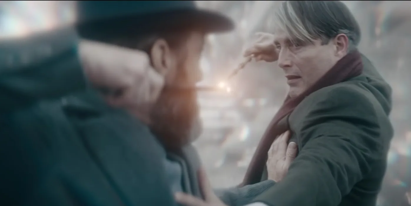 Now, let’s talk about that blood pact we saw all the way back in “Crime of Grindelwald”. According to Dumbledore, the reason why he was unable to openly battle with Grindelwald was due to the blood pact they made years ago. This was created by merging their blood together and having it kept in a magic pendant. They both swore that they would never go against one another in their pursuit of greatness. The magic of the pendant somehow kept them breaking their vow. Yet as we see in “Secrets of Dumbledore”, the blood pact was broken when Grindelwald’s Killing Curse met with Albus and Aberforth’s spell. The only explanation we get of this is Dumbledore telling Newt: “He sought to kill, I sought to protect. Our spells met. Let’s call it fate.”