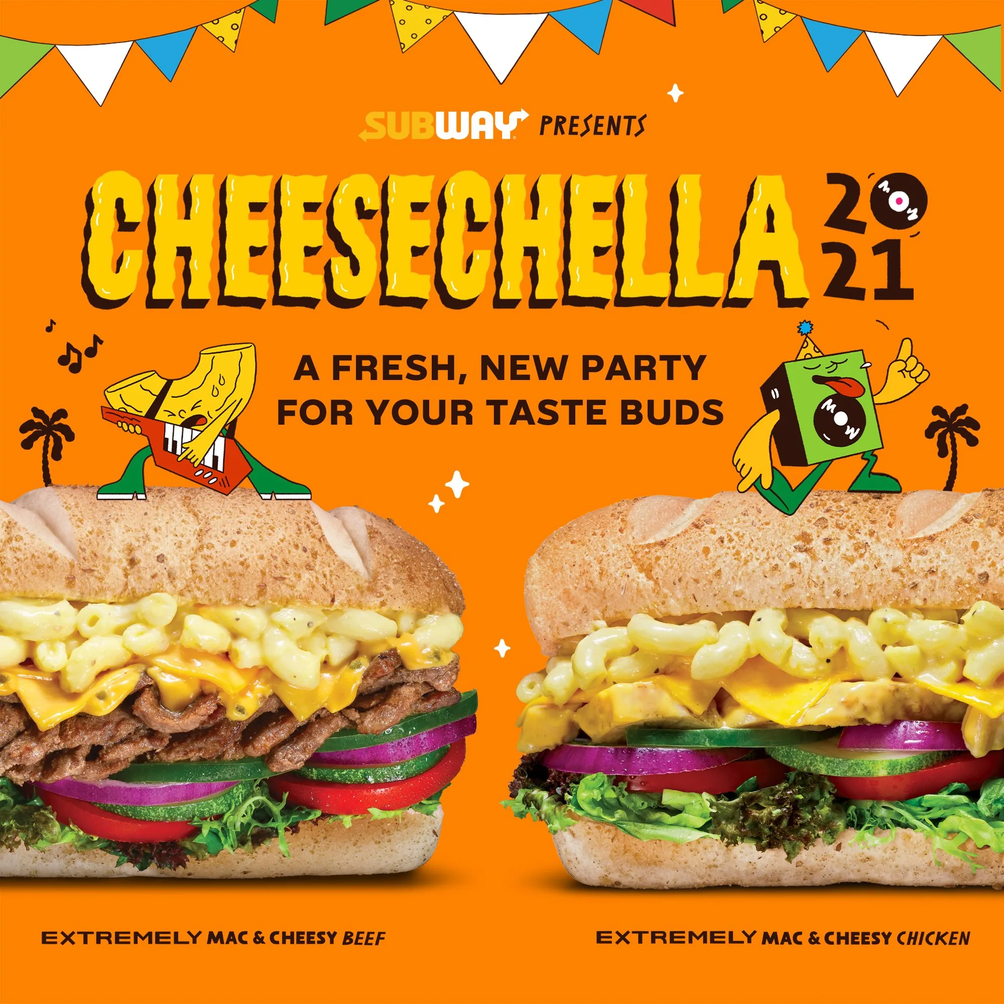 - If you want a healthy option, the Extremely Mac & Cheesy subs are stuffed with double cheddar slices, jalapeno cheese sauce, chicken or beef and a hearty scoop of creamy macaroni & cheese.