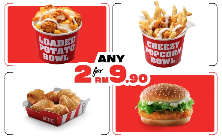 - Choose 2 out of 4 KFC favorites for only RM9.90.