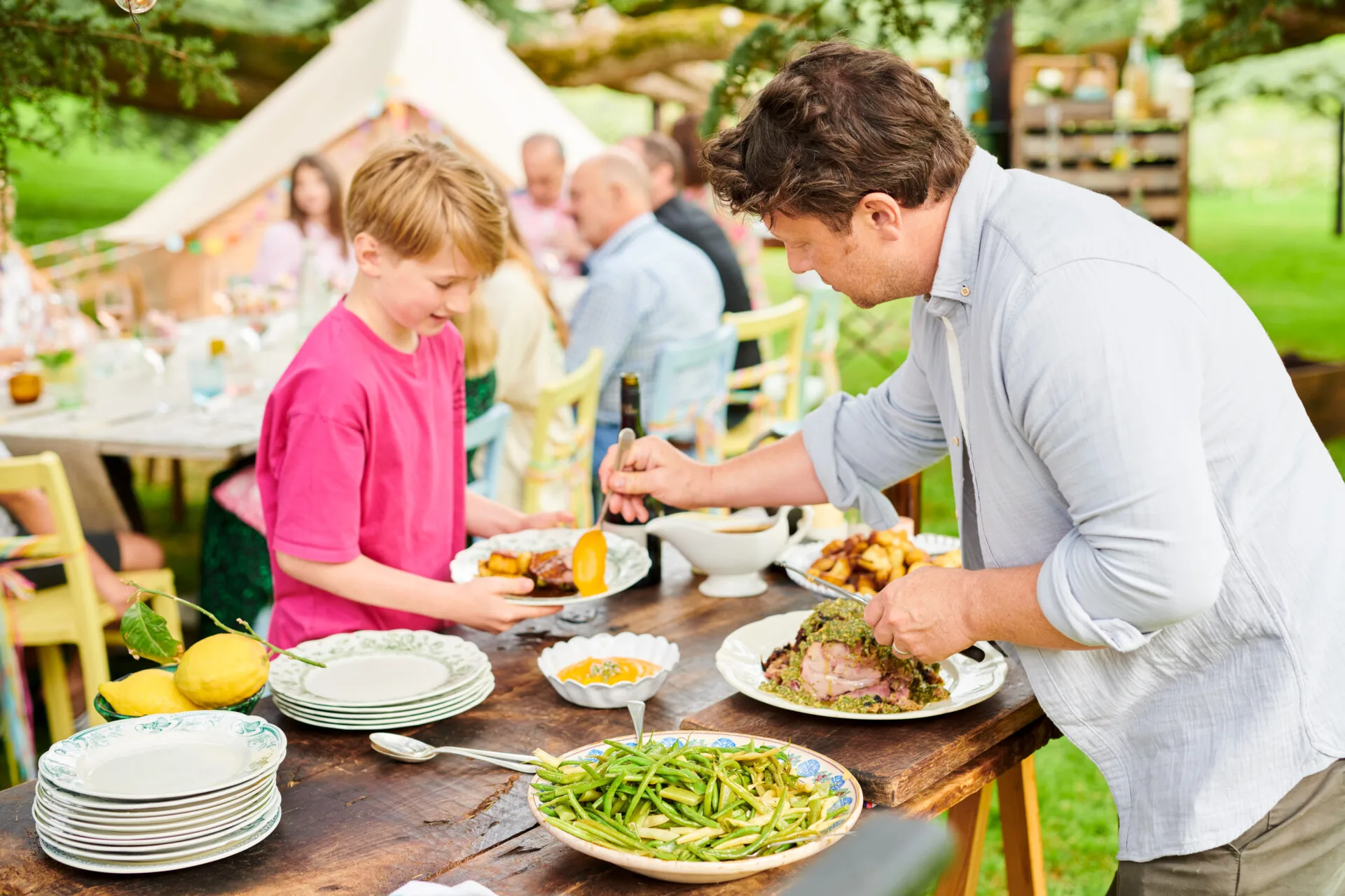 After a lengthy hiatus, popular chef Jaime Oliver returns to produce a series of exquisite dinners to be shared with friends, family, and loved ones. Each episode leads the viewer through cooking a whole dinner from beginning to end, with a range of full feasting menus ranging from nibbles and appetisers to shared plates and delectable desserts.