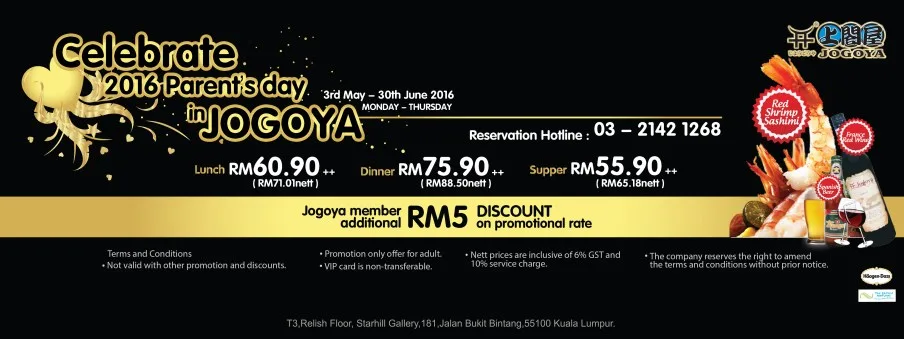 For reservations, call Jogoya Buffet Restaurant at 03–21421268.