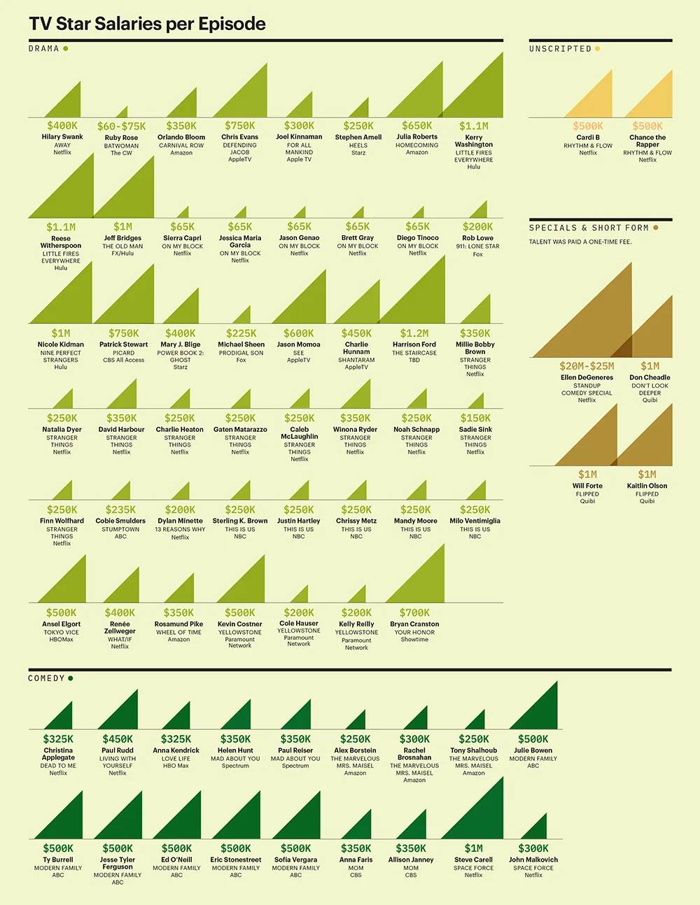 Thanks to Hypebeast, here is a list of how much Hollywood celebrities are making per episode (in USD) these days: