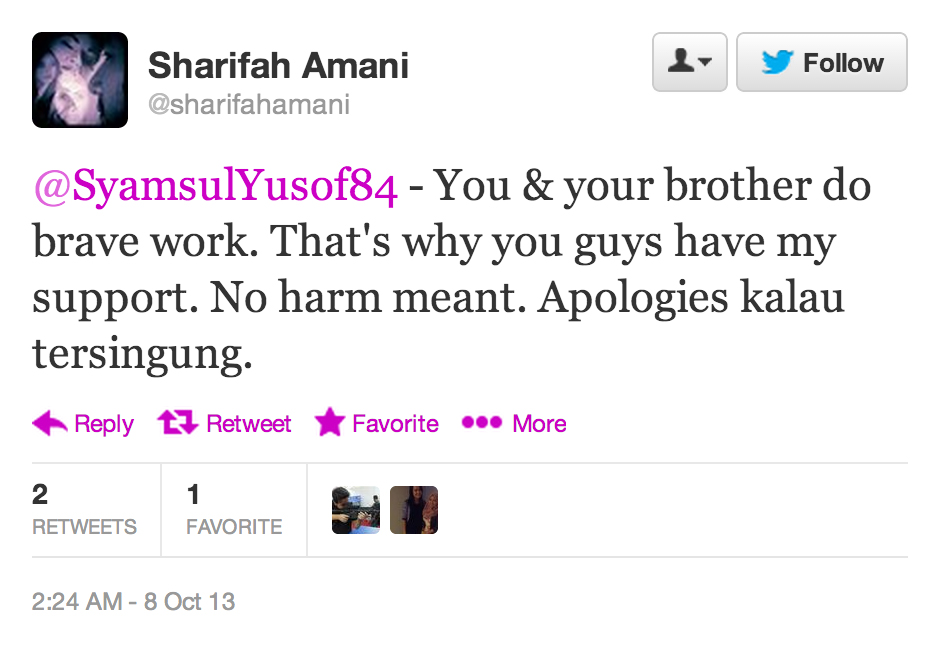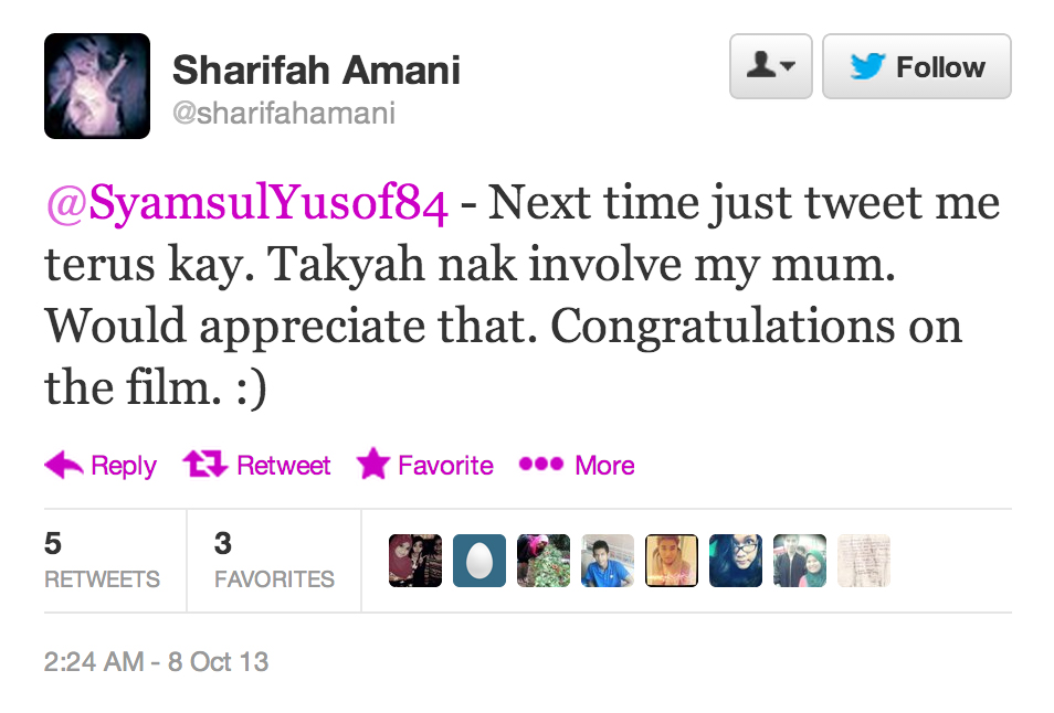 The Sepet actress then cleared the air with her other tweets stating that she respects Syamsul’s work and is just disturbed by the unfairness and obvious double standard treatment in the industry.