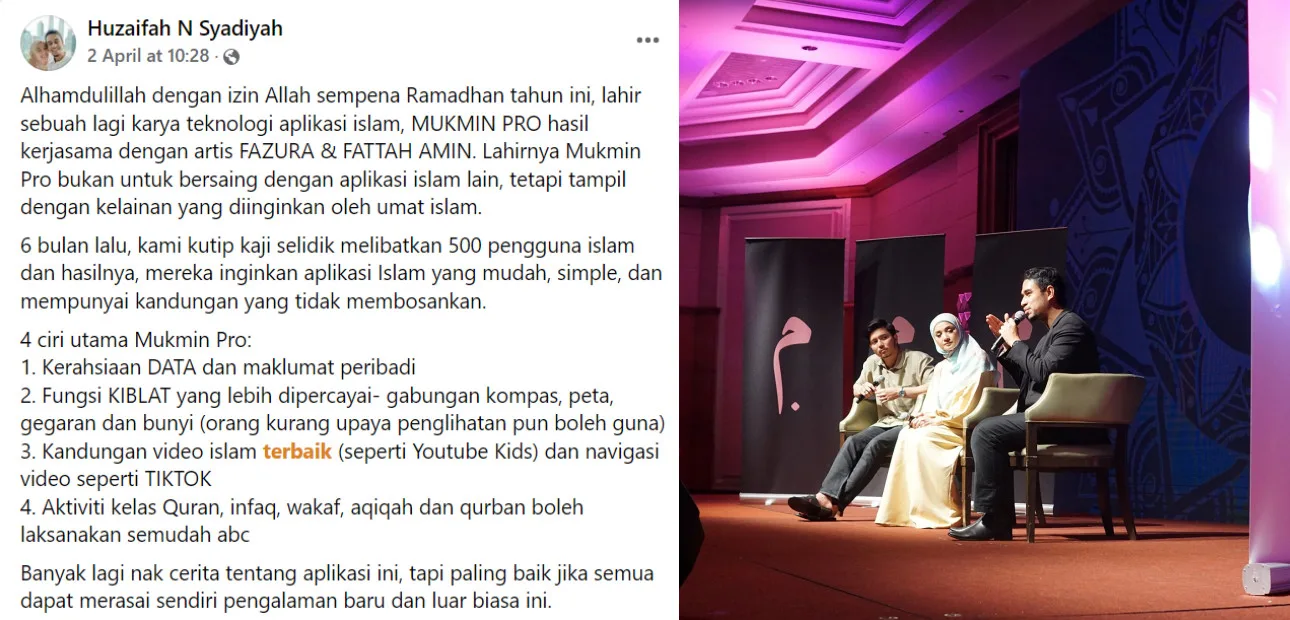 In a statement posted on his Facebook app, the latter also explained that he created the Mukmin Pro app not with the intention of competing with other existing Islamic applications. However, he emphasised that the app features a few variations that are easier for users. In addition, users can also enjoy a variety of interesting content on the mobile app.