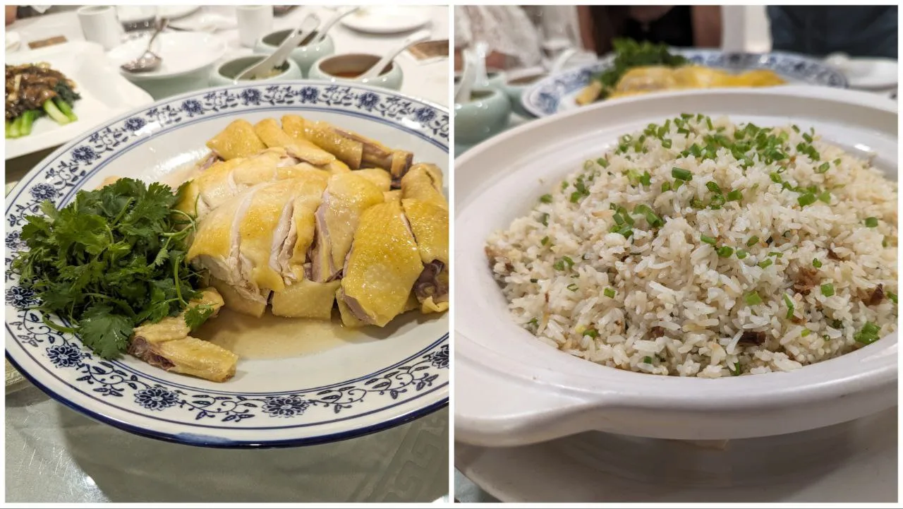 Now, as this conversation went on, a sweet incense filled the atmosphere as pots of food made their landing on the table in front of us. Chicken, juicy and golden, took its seat on the central throne, accompanied by aromatic rice, barbecued char siew, and kai lan.