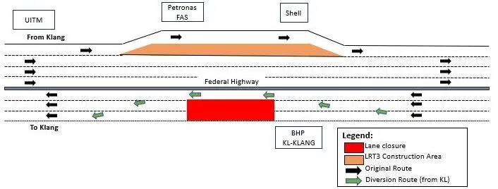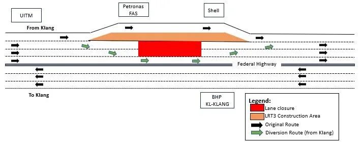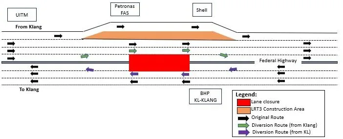 In Stage 2, the fast lanes for both Klang and Kuala Lumpur-bound traffic will be closed on 12th and 13th July. Despite the closures, motorists will still be able to use the two remaining lanes on both sides of the highway, though a slight diversion will be in place.