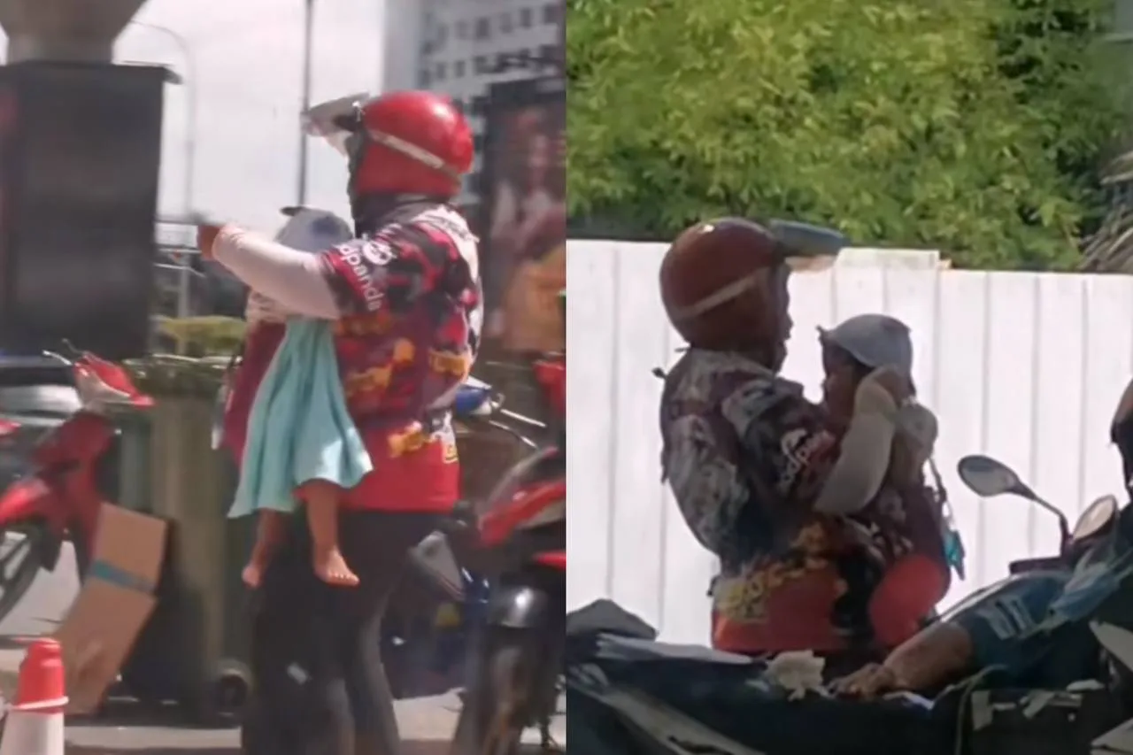 Recently, a TikTok video from a user Zanethnasha (@mamayayahumarsoleh), went viral all over social media for getting netizens all teary eyed. She had secretly took a video of a female foodpanda rider at a gas station somewhere in Kuala Lumpur. The female rider can be seen carrying an infant along with her on the front side of, with a delivery bag propped at the back of her motorcycle.
