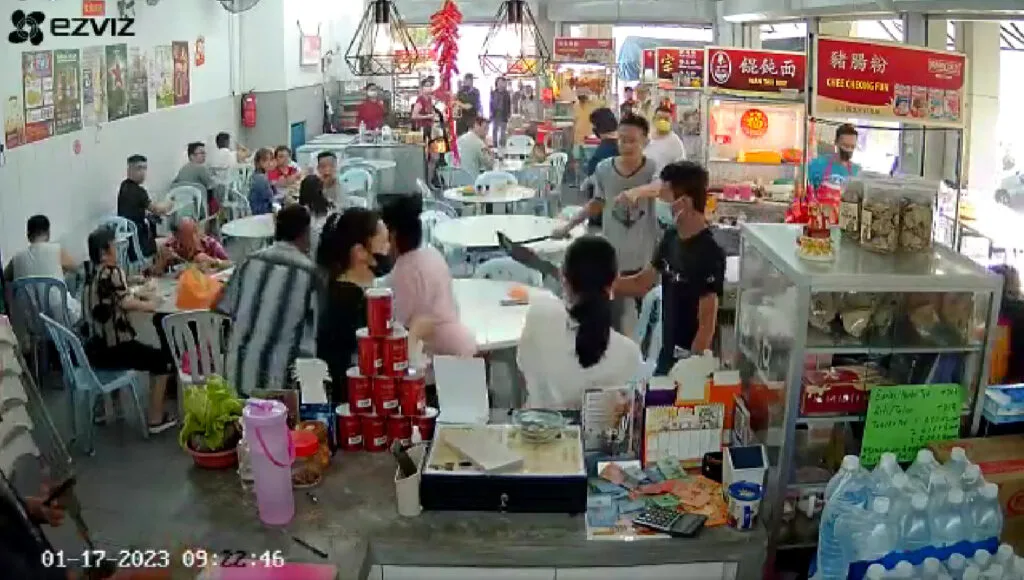 On 17th January, a coffee shop in Cheras had quite the scare. As patrons were waiting for their food and drinks at the local eatery, two men stormed the shop with parangs. While most people fled, one brave hawker stood up for a fellow employee at the risk of her own safety.