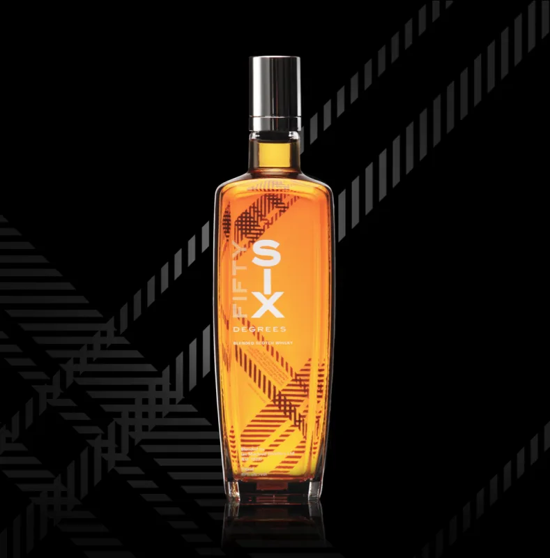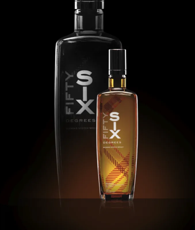Sprightly yet mature in character, FiftySix Degrees strikes a perfect balance of top citrus notes with a rich malty heart, and bears a fresh and creamy palate with a mouth coating fruitiness. The bottle design incorporates a sturdy rectangular base that signifies the relevance of the whisky making tradition to the present, and a streamlined angularity to represent a broadening out towards the future.