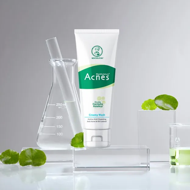 - Cleanse the skin by squeezing an appropriate amount of Mentholatum Acnes Creamy Wash onto wet palms, lather with water and massage gently.