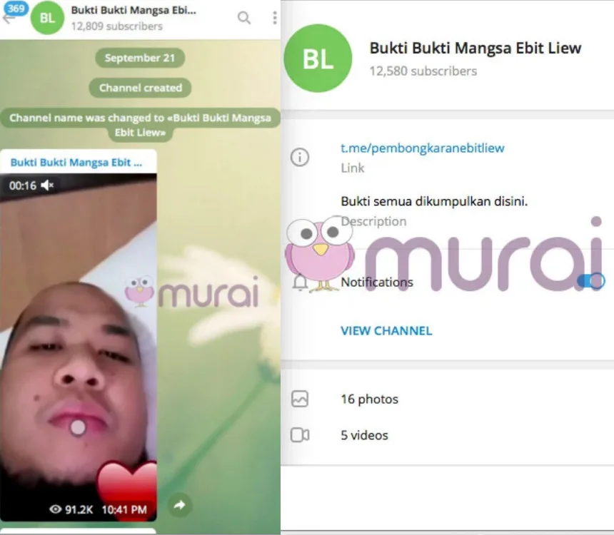 A Telegram link (under the name “Bukti-Bukti Mangsa Ebit Lew”) also shared a a few clips which show an individual resembling the preacher behaving indecently in bed. In fact, the videos were not fully censored prior to being uploaded.