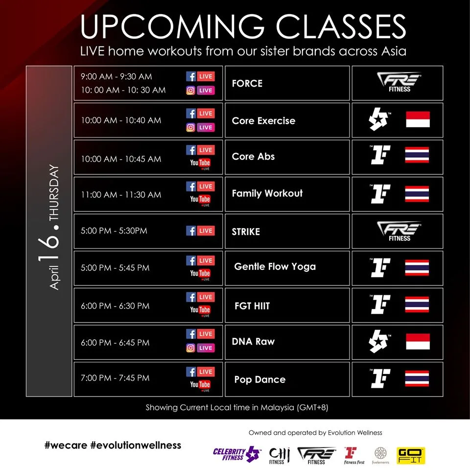 Sure, YouTube videos are accessible at any time, but many of us still prefer a shared experience that can only be provided in workout classes. Under the Evolution Wellness Group, FIRE Fitness, Celebrity Fitness Indonesia, Fitness First Singapore and Fitness First Thailand have curated a 1-week schedule worth of free live workout classes that you can take part in.