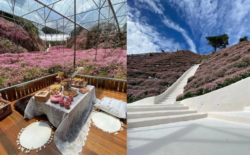 Another highlight is, of course, the flight of whitewashed stairs that look like a pathway to heaven. What awaits at the top of the hill is a vantage point over the mass of flowers in Flora Park. Some have even commented that the dainty pink flowers on both sides of the steps remind them of Santorini or South Korea.
