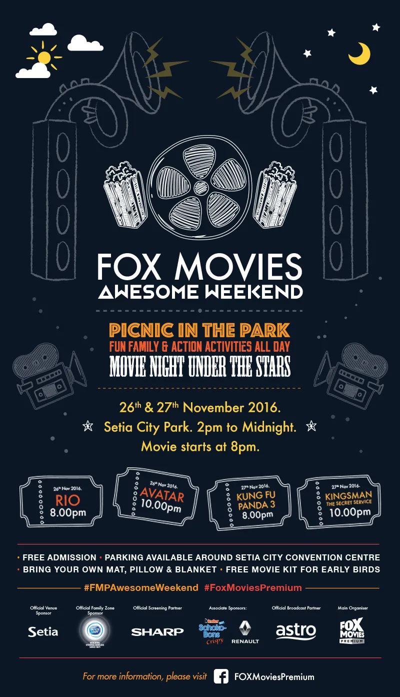 In conjunction with the school holidays, FOX Movies Premium will be organising a 2-day movie-fanatic event from 26th to 27th November 2016 (Sat – Sun), from 2pm to 12 midnight at Setia City Park, Setia Alam.