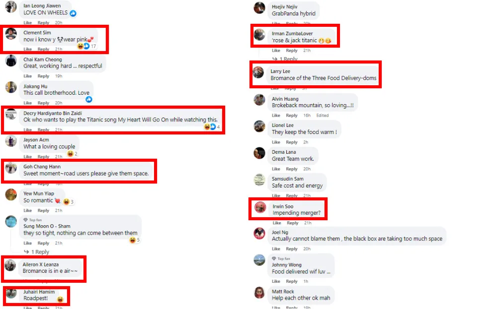 Netizens were quick to coo over the duo, with some good natured teasing thrown in. “Now I know why Foodpanda (wears) pink,” one quipped. “Ok, who wants to play the Titanic song “My Heart Will Go On” while watching this,” another asked. “Sweet moment— road users please give them space,” a comment read. A few even asked to get in on the action.