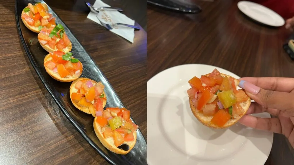 For starters, we had the Bruschetta Tomatoes, which comprised five slices of toasted bread, each nicely topped with fresh tomatoes, extra virgin olive oil, basil, garlic, and onion. The flavours that emerged were, well, marvelously mouthwatering!