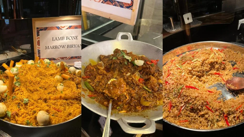 Next, we helped ourselves to the Lamb Bone Marrow Biryani. Visually, it looked so tempting, because the bones were huge, but not that fleshy. Taste-wise, we were expecting a strong, gamey lamb flavour, but it was very, very mild. So it was a hit and miss dish. The rice was perfectly cooked with lots of spices, though. To compliment the biryani, they had a simple curd. We felt that the curd should have been thicker and not watery.