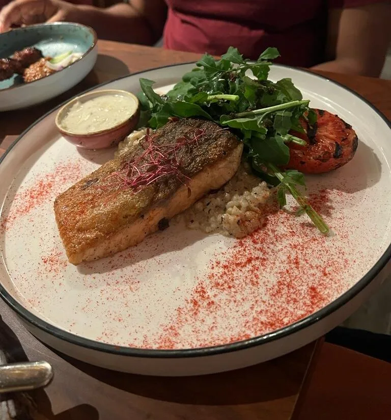 Last but not least, the Sumptuous Salmon. Everything about this dish was light, but refreshing and tasty. We got a pan seared salmon with pearl barley, baby spinach, arugula, lemon butter sauce and tomato salsa. Another new thing: pearl barley. Usually, we see barley in drinks – but this is part of a dish. The fish was cooked perfectly, with all the flavours packed into it. Eating this meal gave us a zing, especially when scooping morsels up together with the lemon butter sauce. We loved every bite!