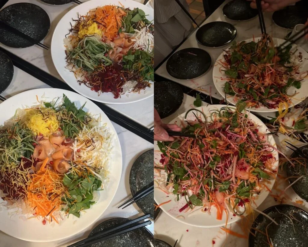 The feast begins with the Golden Prosperity Yee Sang, made with a medley of julienned local vegetables – pegaga, celun, sengkuang, ulam raja – sliced red dragon fruit, wild-caught smoked salmon, yam and sweet potato crisps, and citrus honey lemon dressing. We’d say this version of the yee sang is pretty impressive, and the taste is different, too. You get a sweet and fruity aftertaste, and the ingredients used in this yee sang are super fresh compared to the traditional yee sang. Of course, it had to get messy! No Chinese New Year is complete without the traditional yee sang tossing (also known as the prosperity toss). During the yee sang toss, the Chinese would shout out all sorts of auspicious wishes and hopes for the new year, including for good fortune, health, happiness and more. It’s believed that the higher you toss, the more luck you get. So, worry less about the mess and more about the fortune.