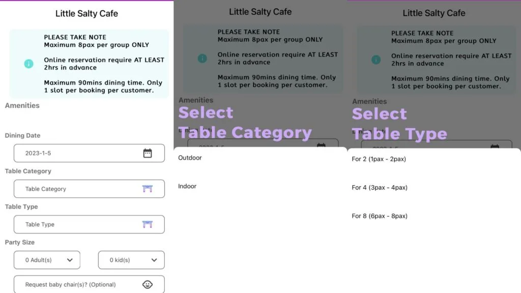 As tempting as this spot sounds, you can’t just walk in. You’ll need to make reservations, which we think is a good idea. You can make a reservation by clicking this link. Fill in the date, time, number of pax and preferred seating area to comfirm your spot. This café allows a maximum of 8 pax per group and a maximum of 90 minutes dining time. To order you meal, you’ll be given a QR code upon arrival. Just scan and order away!