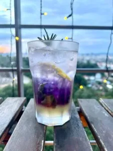 Of course, the Little Salty Café offers more than just breathtaking views. Although their menu isn’t that extensive, they do offer a small selection of dishes ranging from spaghetti and grills, to cakes and pastries. Since there were only two of us, we didn’t order much. We started of with a pretty drink called the Dreamz Lemonade. Although it’s just lemonade, we loved how creative they got by making the beverage look too pretty to drink. Check out the dreamy purple hues!