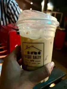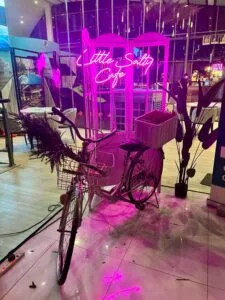 Little Salty Cafe is also a great spot for taking aesthetic photos. One area is obviously the balcony. Another spot we liked is right at the entrance. They have a neon sign of the café and a vintage bicycle.