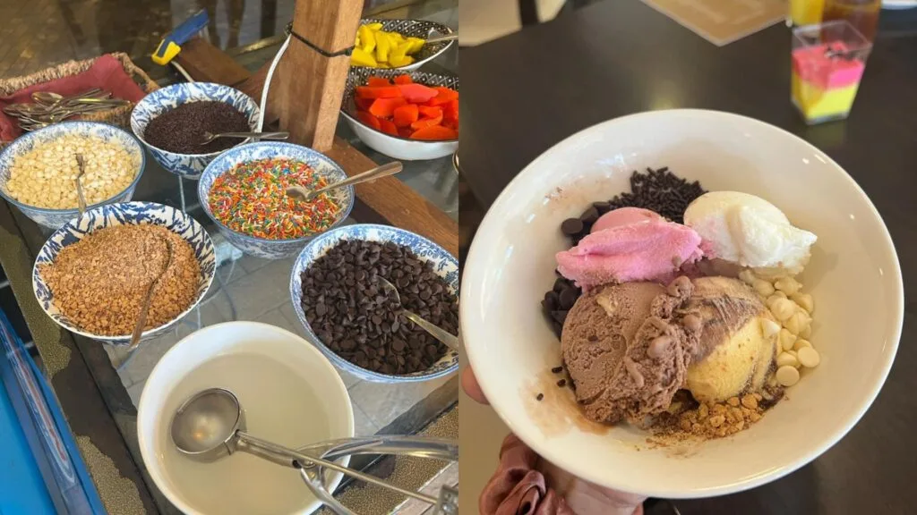 After having a few good cakes, we went for ice cream. The buffet offered 4 basic flavours, which were vanilla, chocolate, strawberry and a mix of vanilla-chocolate. To enhance our ice cream, they even offered various toppings like crushed peanuts, chocolate chips, white chocolate chips and coloured rice. We recommend the crushed peanuts because the ice cream tasted exactly like the 50 sen ice creams cones we loved as kids.