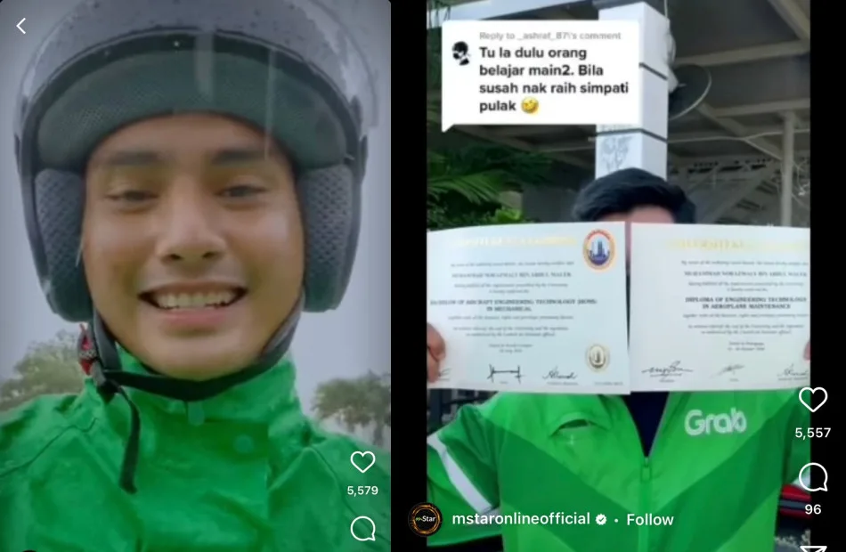 Refusing to stay mum, he responded by briefly showing off his certificates of education (diploma and degree) in order to shut the netizen down. In speaking to mStar recently, the deliveryman, Muhammad Norazmaly Abdul Malek, said that he’s been working as a food rider since December of last year.