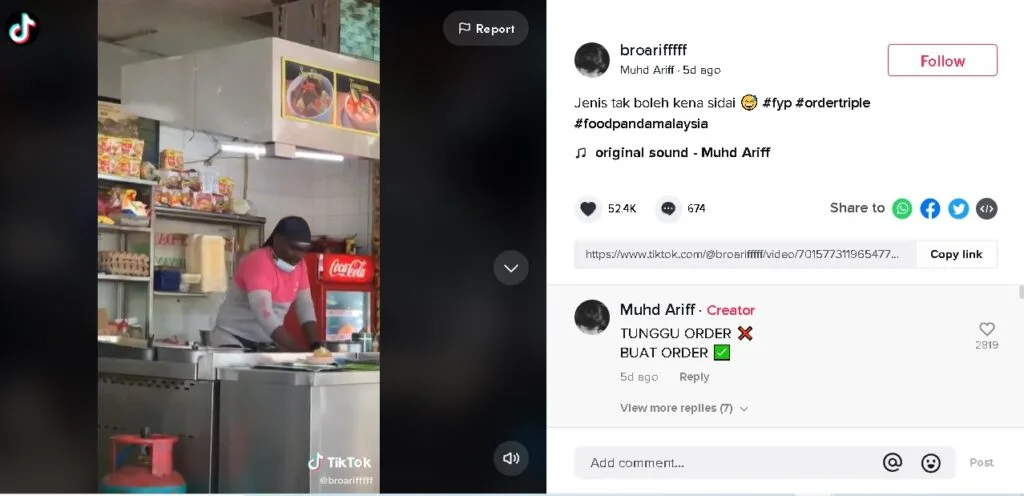 At the time of writing (Tuesday, 12th October), the video posted by Muhd Ariff has received over 330K views and 52.9K likes on TikTok. The comments section has also been flooded with tons of reactions left by netizens who were greatly amused by the FoodPanda rider’s antics.