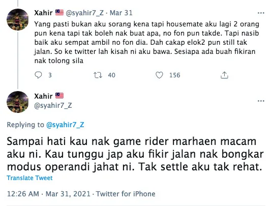 He further revealed in another thread, “What’s for sure is, I’m not the only one who fell victim. My housemate, in addition to 2 other individuals, also got manipulated but I couldn’t do anything about it, I don’t even have his phone number. But luckily, I managed to obtain his number. We tried to discuss the matter in a nice way, but it didn’t work out. That’s why I brought up this story on Twitter. Anyone who has any thoughts or helpful suggestions, I’m all ears”