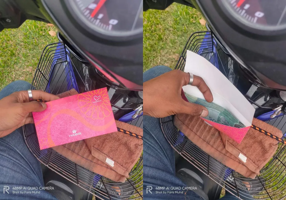 However, after he opened the envelope, Faris was shocked to see a large amount of money amounting to RM1k inside it. Without wasting any time, he proceeded to call the woman to make sure that he took the right envelope.