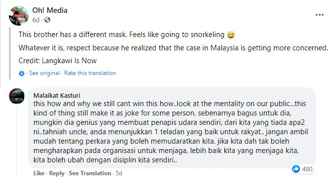 Netizens had mixed responses to the foreigner’s actions. Some respected his odd outfit, saying, “He has probably realised the cases in Malaysia are getting more concerning.” Another praised him and his ingenuity. “Maybe he’s a genius who made his own air filter,” they said. “From those of us who don’t have the supplies: congratulations uncle, you’re a role model for the people.”
