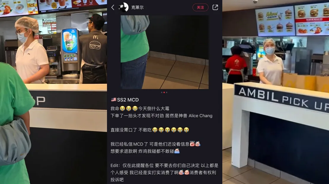 Last week, the Auntie Anne’s outlet at Mid Valley Megamall fired a staff member after she posted photos and videos of her unsanitary behaviour in the kitchen. It was later discovered that the now-former employee, Alice Chang, is the sister of the infamous con artist Adeline Chang. Netizens called for Alice to be banned from the food and beverage industry, but surprisingly, she was spotted working at a McDonald’s outlet in SS2, Petaling Jaya recently.