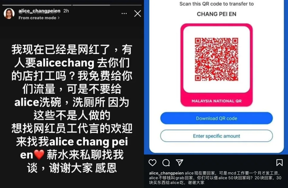 As for how Alice is handling the negative attention, she’s taking it quite well, much like her sister. After going viral, the current McD worker proudly declared herself an internet celebrity on her Instagram Story.“I am now an internet celebrity! Do you want Alice Chang to work at your store? If you want me to endorse your product then please contact me [on IG]. If you want to talk about salary, please contact me privately,” she wrote. The self-proclaimed influencer even asked followers to transfer her money for a Grab ride home and food since she would have to wait a month for her salary.