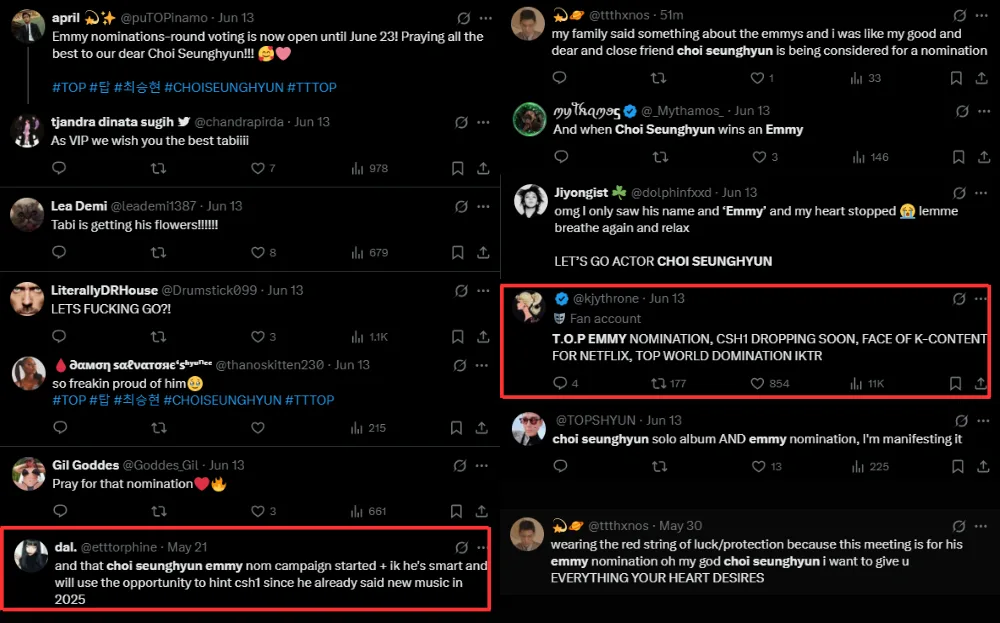 Fans were clearly excited over the news, with most comments congratulating him on the nomination campaign. Fans have also pointed out that the nomination ballot could be thanks to his appearance at FYSEE LA Squid Game panel on 30th May 2025 with Twitter user @/etttorphine commenting, “That Choi Seunghyun emmy nominee campaign and I know he’s smart and will use the opportunity to hint CSH1 since he already said new music in 2025″. The fact was proven to be true following his solo comeback album spill last Friday (13th June 2025).