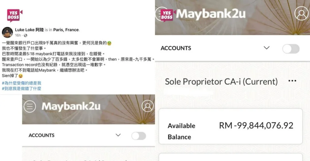 The travel blogger added that his bank, Maybank had called him at 5:18am, Paris time, however he did not answer the call as he was sleeping. “When I woke up and checked my account, I (first) thought I was short of more than a hundred dollars,” he stated. “Too many digits could not be counted. Then, it turned out (it was) more than negative 90 million.”