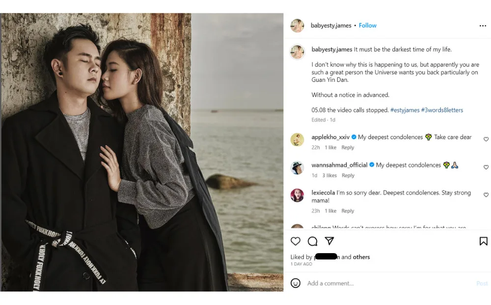 His wife, Esther Ng, mourned her late husband through her Instagram account. In one of her posts, she wrote, “It must be the darkest time of my life” and added, “Apparently you are such a great person the Universe wants you back particularly on Guan Yin Dan.”