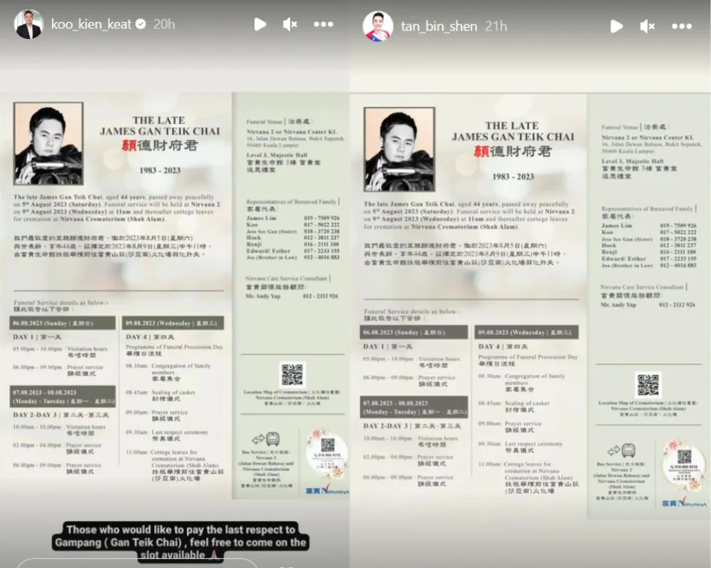 The Badminton Association of Malaysia (BAM) also announced the news of passing through social media, sending condolences to the former national shuttler’s family, friends and loved ones. Hannah Yeoh, the Minister Of Youth and Sports, also took to social media to share her condolences, as well as Teik Chai’s former partners, Koo Kiet Keat and Tan Bin Shen, who also shared details about the late athlete’s funeral services.