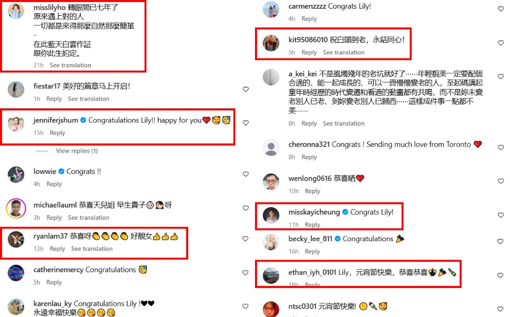 Fans and friends have extended their congratulations to the star on her marriage. Lily debuted in the Hong Kong entertainment industry in 2008 after winning the “Miss Tourism Ambassador” award at the Miss Hong Kong Pageant. While signed to TVB, she began appearing in various television series. After her contract with TVB expired, she shifted her focus towards online entertainment, making a name for herself as a KOL and influencer.