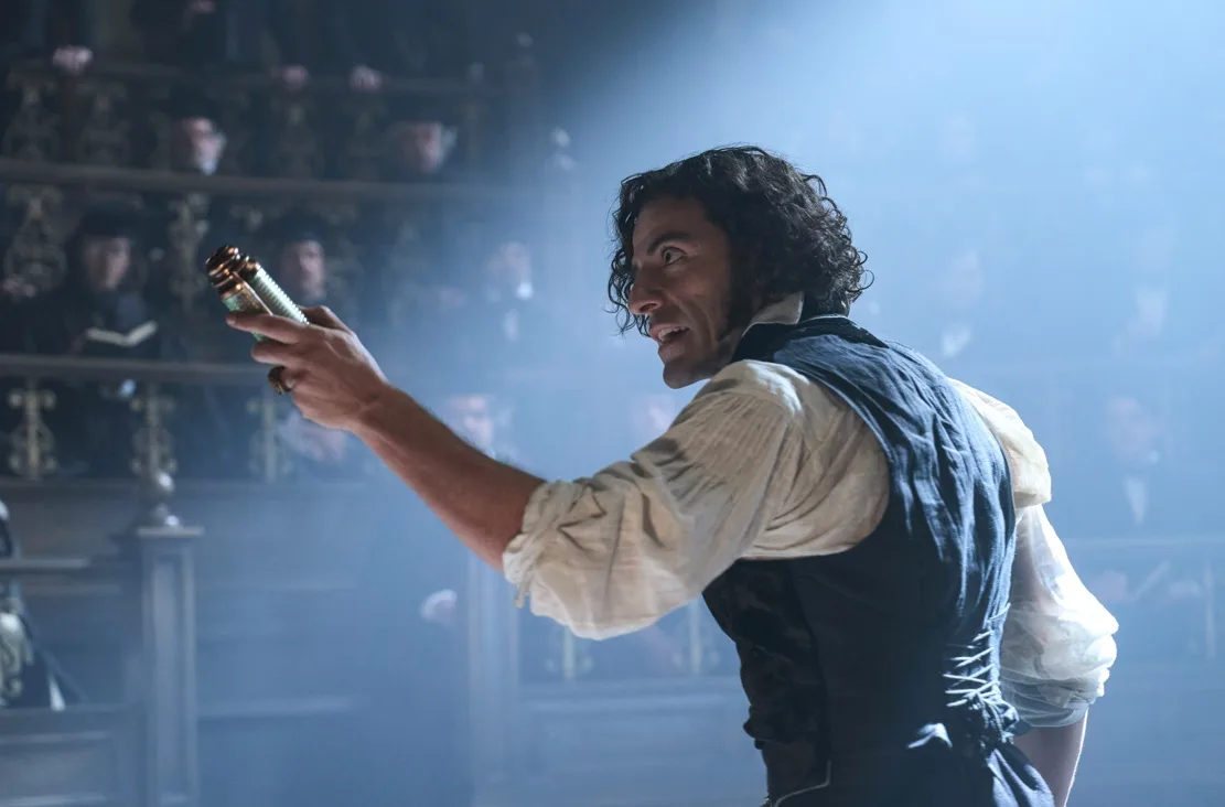 Del Toro amplifies Victor’s arc through cinematic language. Wide-angle lenses twist the halls of his laboratories, bending space to reflect the man within them. Similarly, flickering candlelight and carefully orchestrated shadows make every corridor feel both claustrophobic and monumental. The atmosphere is suffused with dread and brilliance. Additionally, Alexandre Desplat’s score threads through these visuals. It is mournful, celestial, and renders both awe and sorrow palpable.