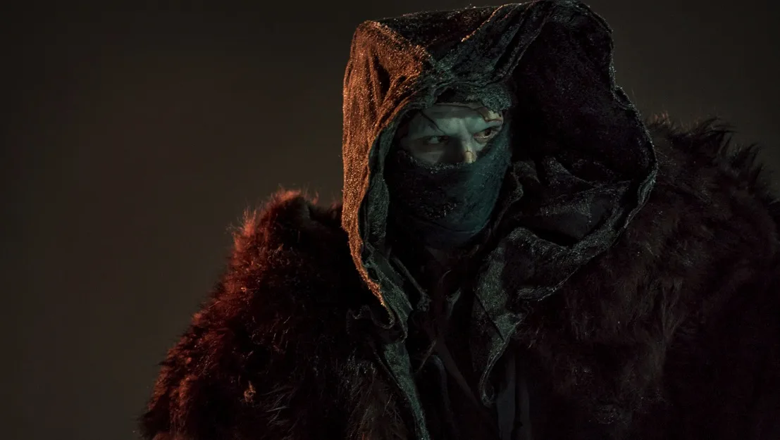 Consequently, Elizabeth becomes a living symbol of life, rebirth, and harmony. From rich blues and greens accented by bug-inspired jewellery and feathered headpieces to luminous veils and gothic necklaces, Elizabeth punctuates the ashen visual palette. In this way, she signals the human conscience of the story.