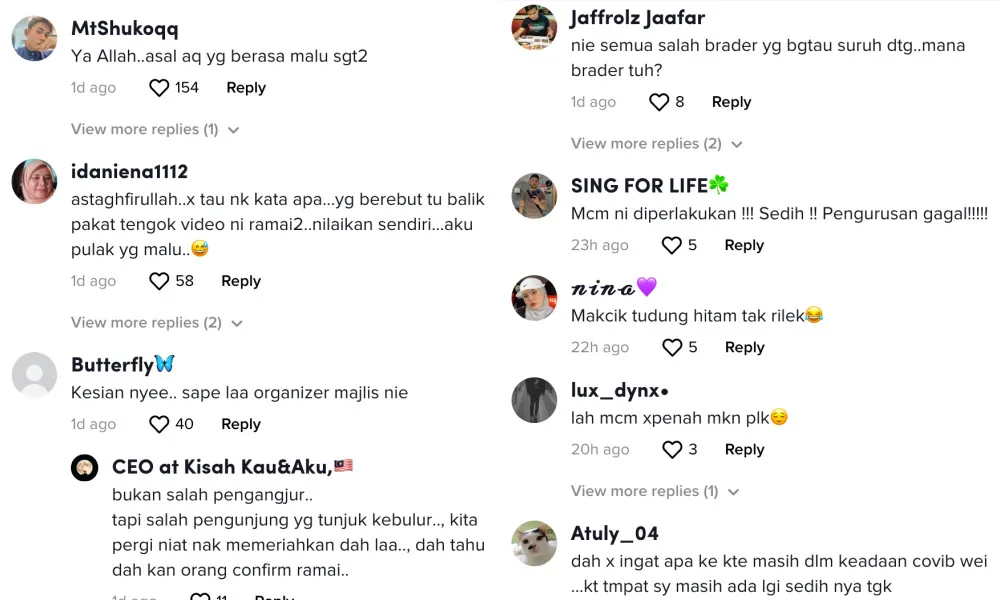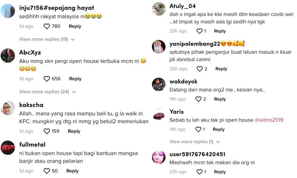 Netizens also commented with remorse that such a situation happened in Malaysia and blamed the open house organisers for not giving out clear rules before they started distributing the KFC. Read more comments from TikTok users below: