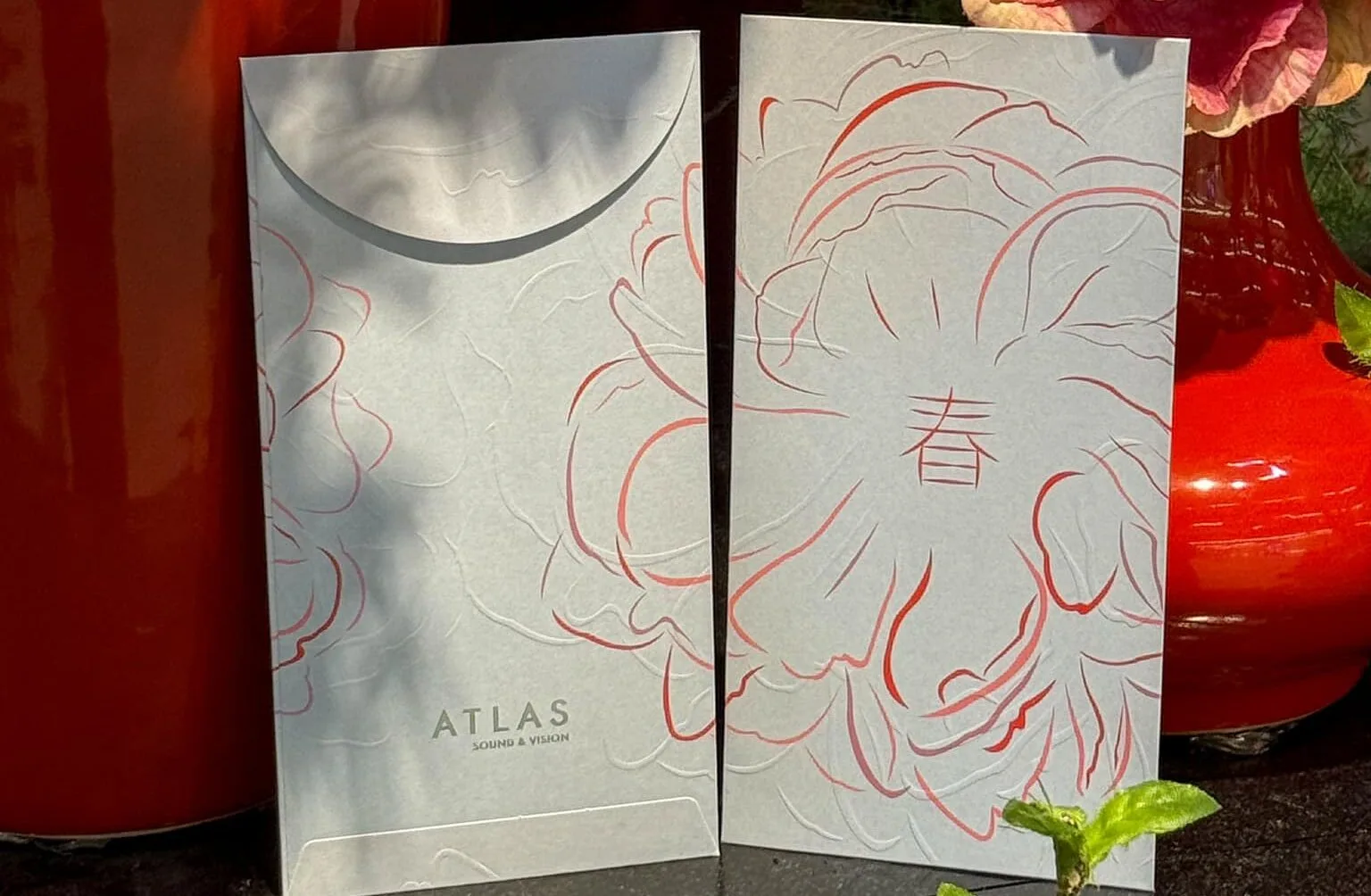 Atlas, unlike other angpao designs, has chosen to favour the softer colour of white. With simple strokes of red painting a flower around the packet, it embodies tranquility and brings an unexpected calm to the festivities.