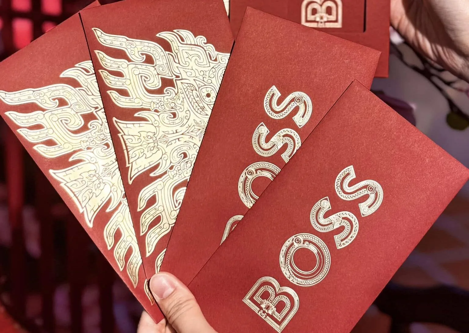 This red packet packs a punch in it. Hugo Boss’ angpao is bold and makes a very loud statement. Every element in the design captures your attention, demanding it immediately, showing off its full glory.