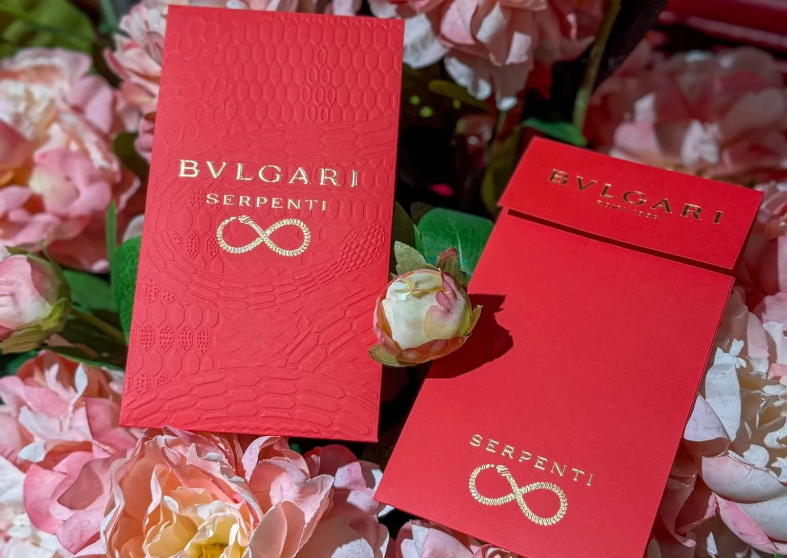 At a first glance, Bulgari’s angpao design looks shockingly simple, though stunning nonetheless. However, once you take a closer look at the snake detailing that’s been embossed onto the material, you’ll change your mind immediately. It’s an intricate and easy-to-miss design, that will renew your appreciation for the finer details.