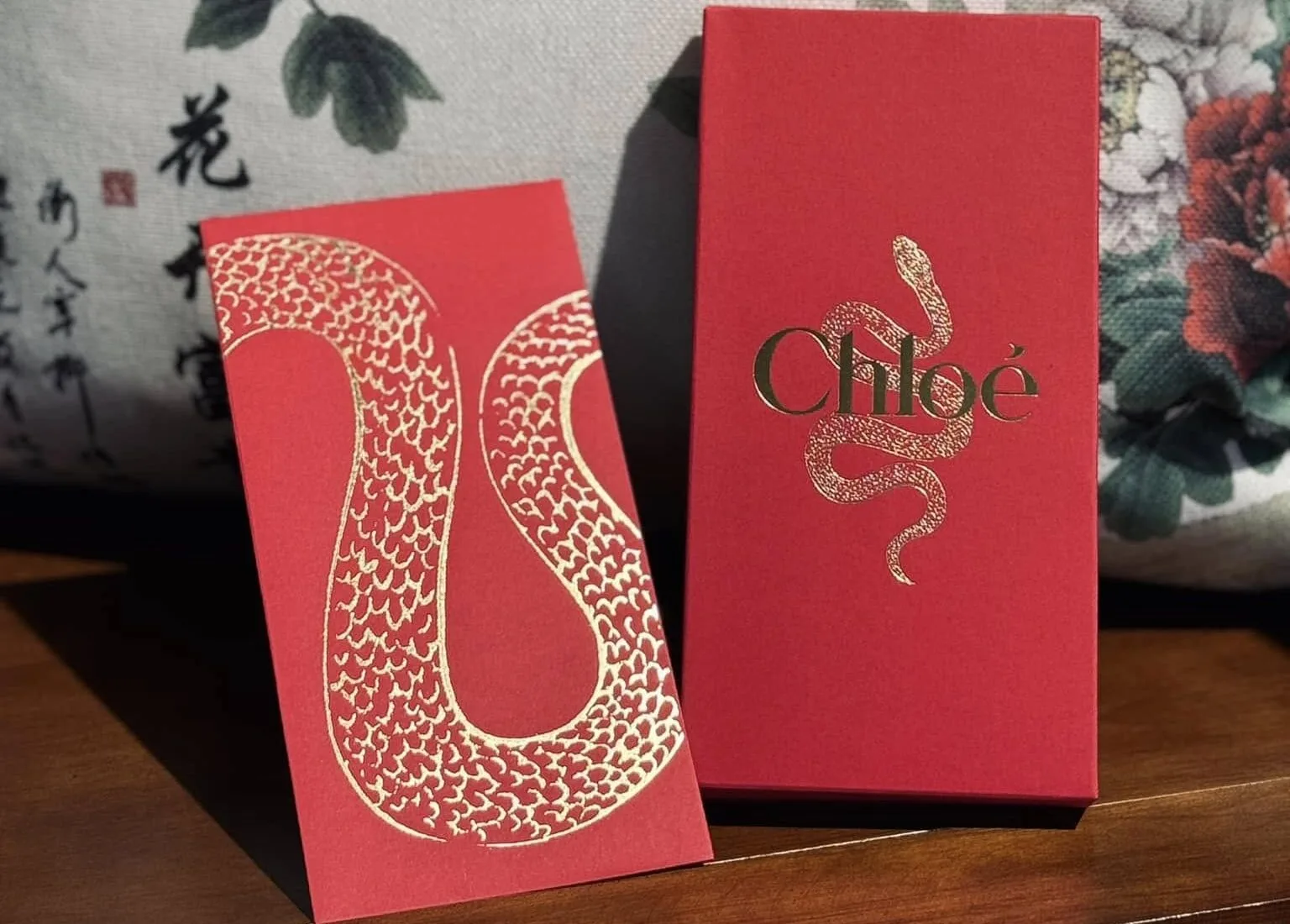 Our last, but most definitely not least design on this list is from Chloé. Wonderfully on point with the lavish snake design, your eyes are immediately drawn to the golden scales that seem to glide across the red paper. It’s beautiful, captivating and perfect for Chinese New Year.