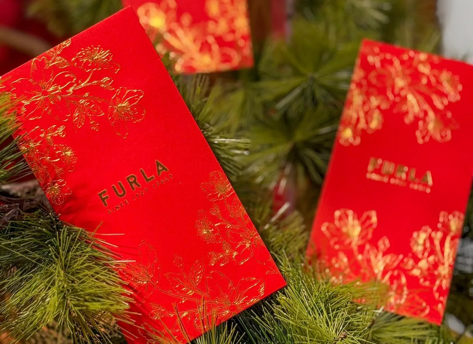 Furla takes a quieter approach compared to the design above. Seeming almost tranquil with its soft lines and simple colours, the design elements on this angpao are subtle, a simple yet effectively elegant vibe portrayed through the red packet.